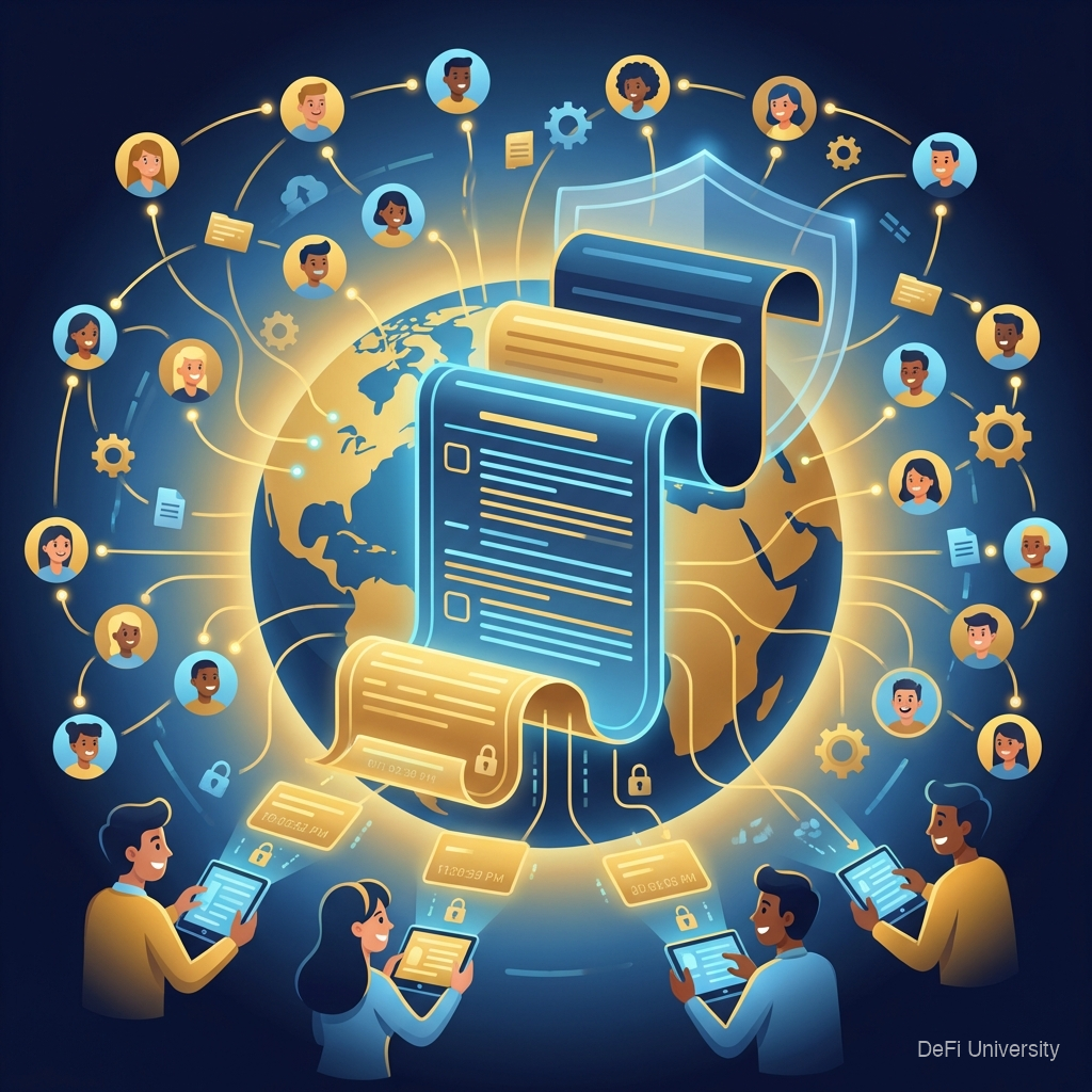 Instead of a bank keeping private records of who has what, the blockchain is a public record that anyone can verify. No single entity controls it.