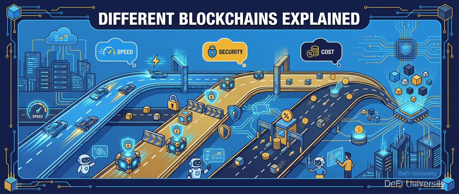 Core concept: Different blockchains are like different highways—some prioritize speed, others security, others cost. No single blockchain is "best" for everything.