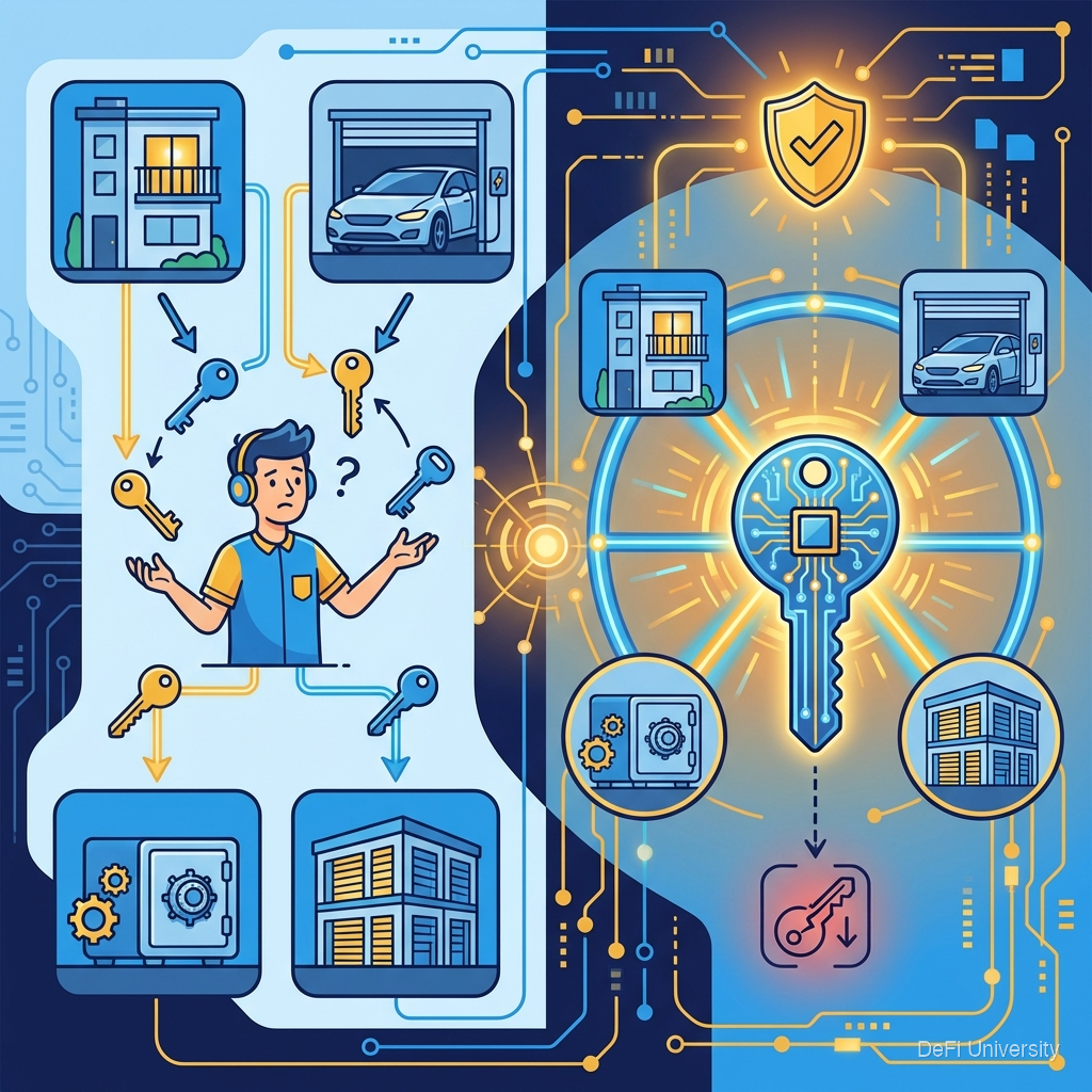 Imagine you have an apartment, a car, a safe deposit box, and a storage unit. Instead of four separate keys, you have one master key that opens all of them.