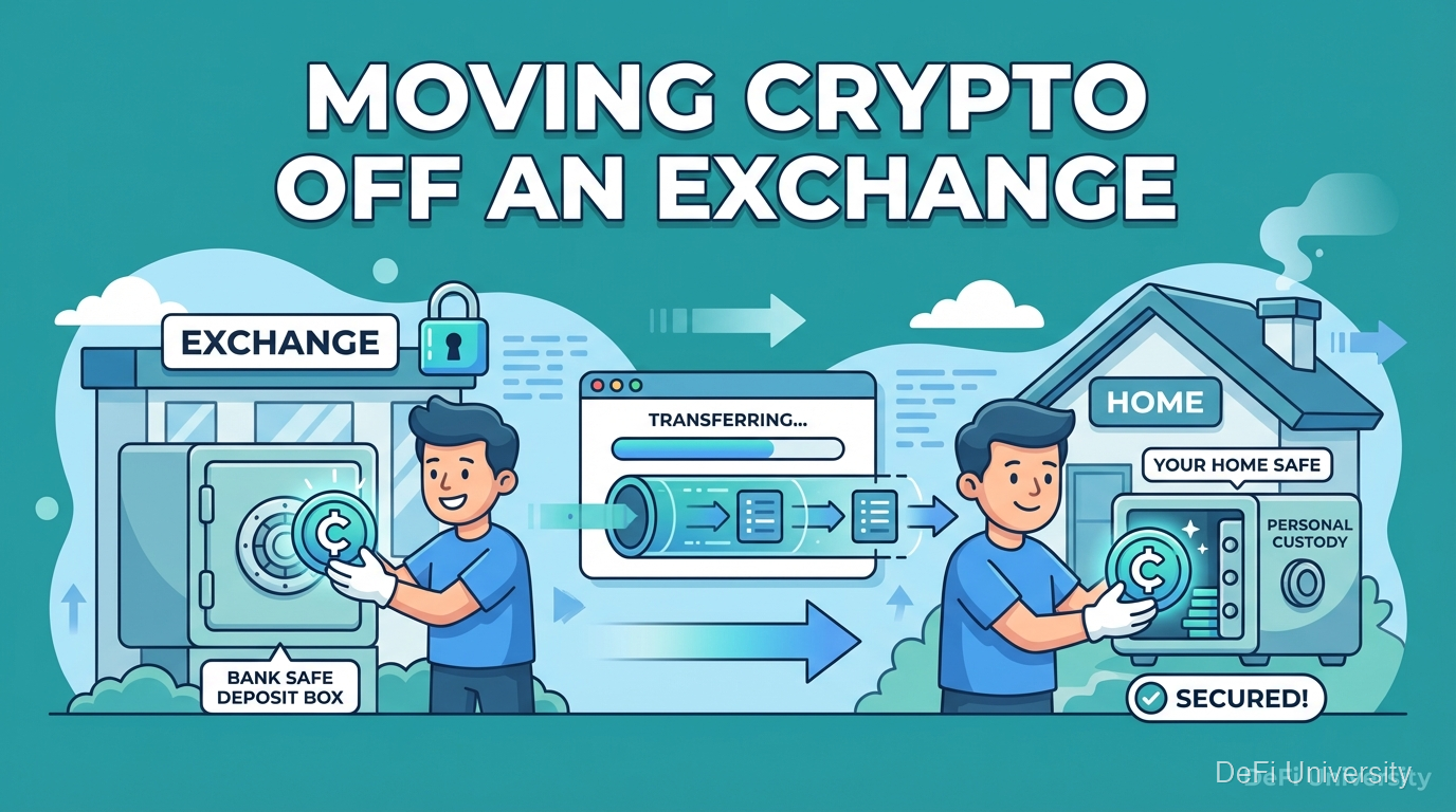 Core concept: Moving crypto off an exchange is like moving valuables from a bank safe deposit box to your home safe—you're taking personal custody.