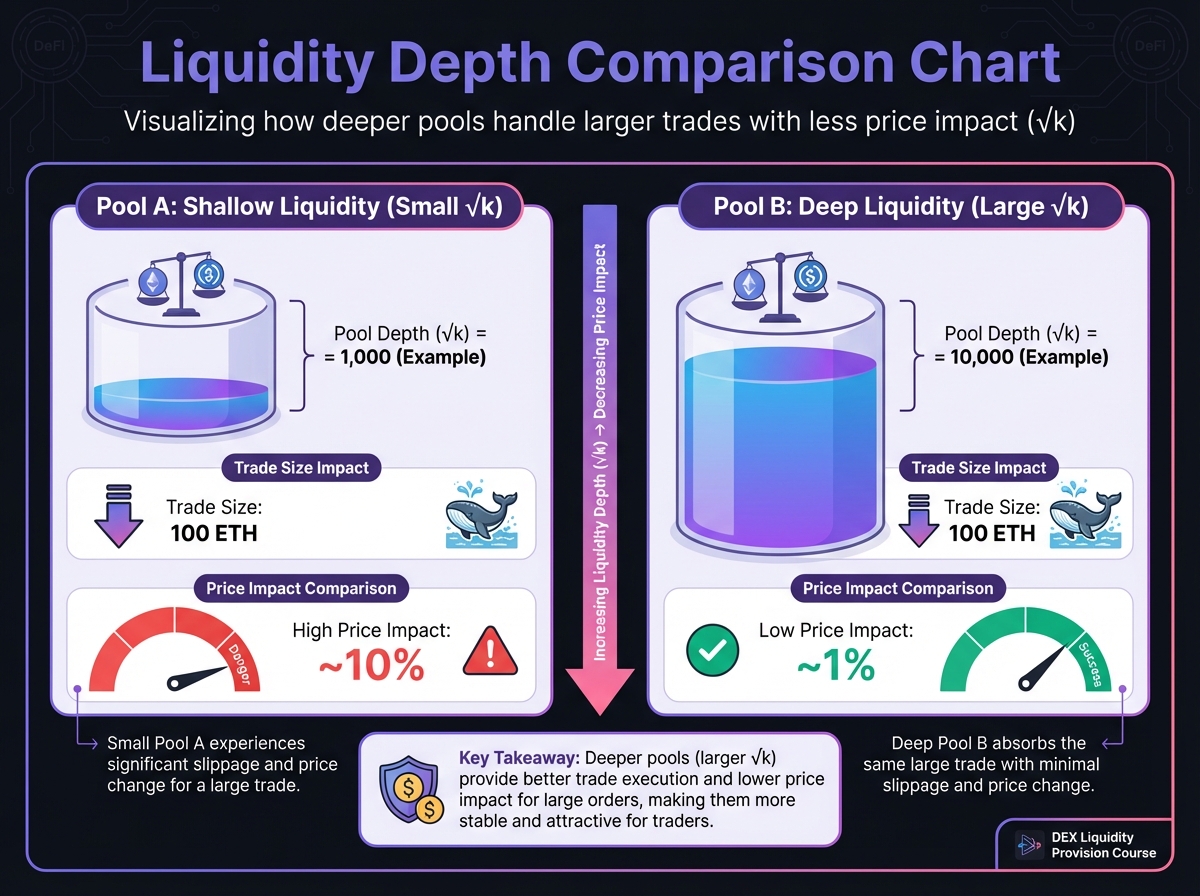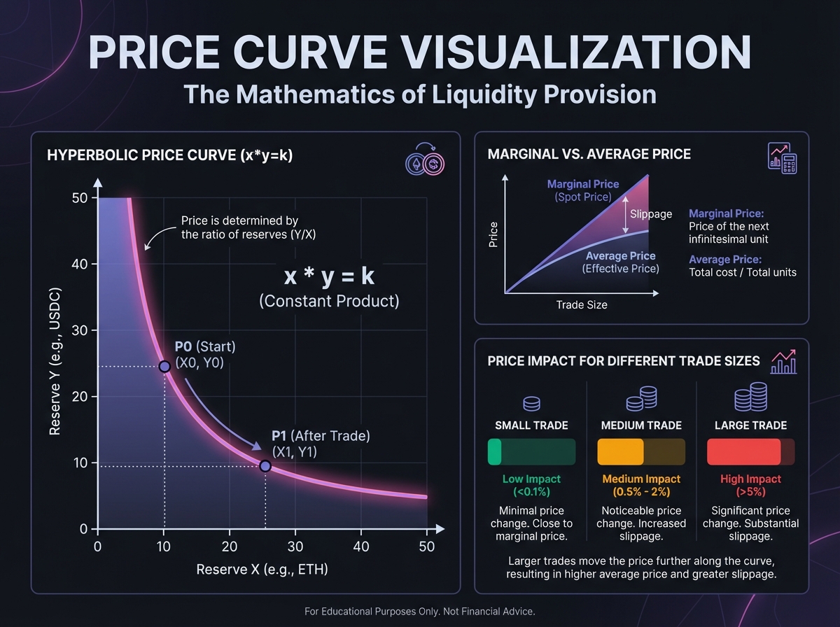 Key Insight: Trade size matters. A $100,000 trade in a $1M pool will have significant impact. A $100 trade in the same pool will have minimal impact.