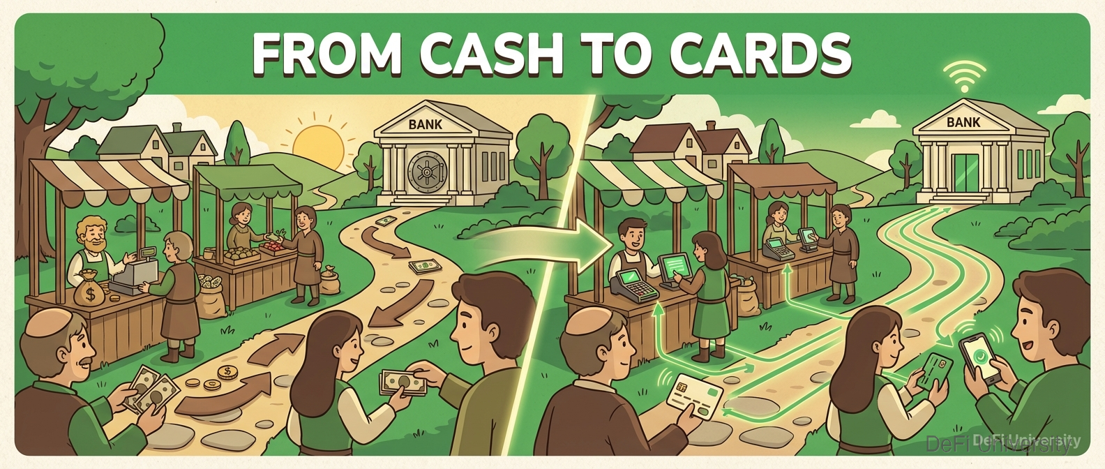 Core concept: The shift from cash to cards changed how money moves—but the underlying system stayed mostly the same.