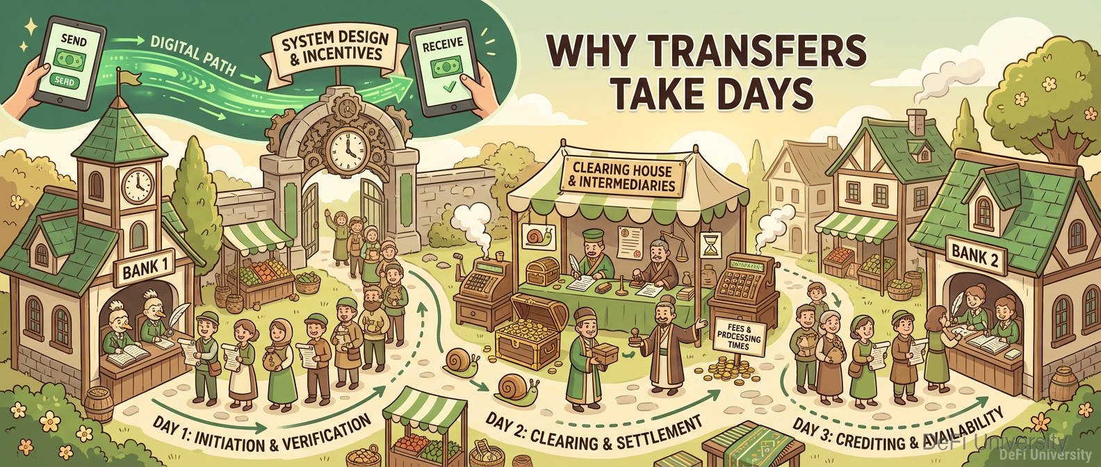 Core concept: Bank transfers take days not because of technology limitations, but because of how the system was designed and the incentives of those running it.