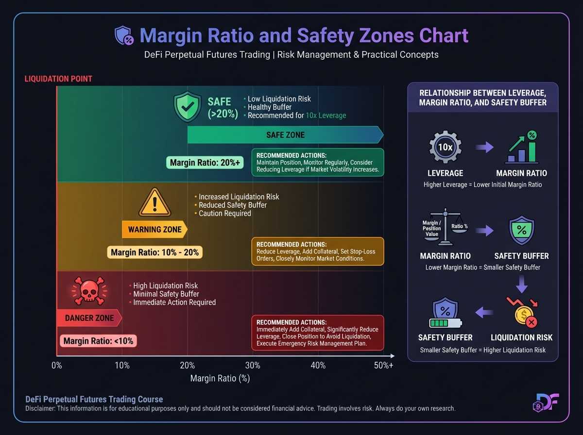 Safe: Margin Ratio > 20% (for 10x leverage)